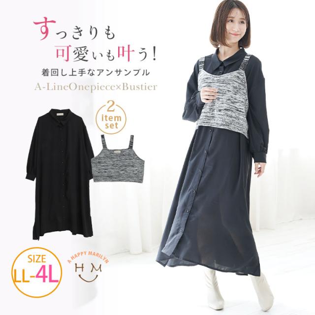 新作 大きいサイズ レディース セットアップ | すっきり可愛い Aラインワンピース×ビスチェ SET [473240] LL 3L 4L