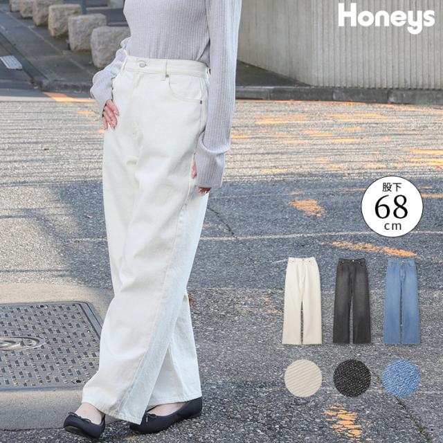 ボトムス パンツ 白 黒 レディース コットン デニム オールシーズン Honeys ハニーズ ストレートパンツ(股下68cm)