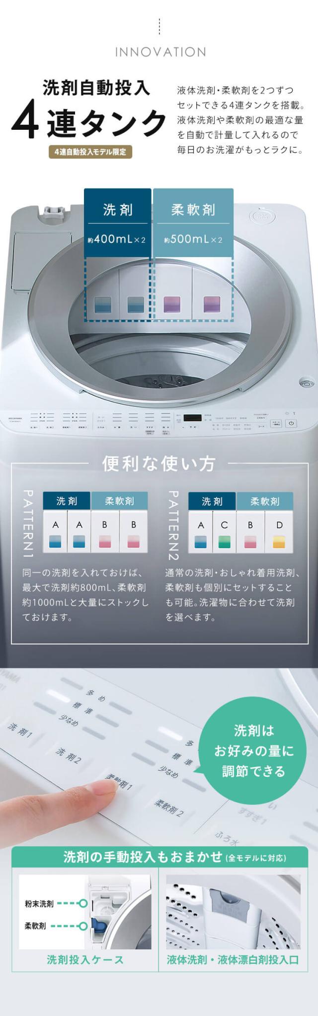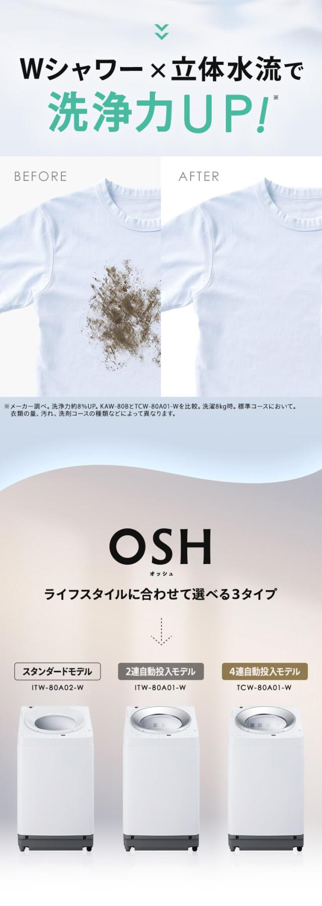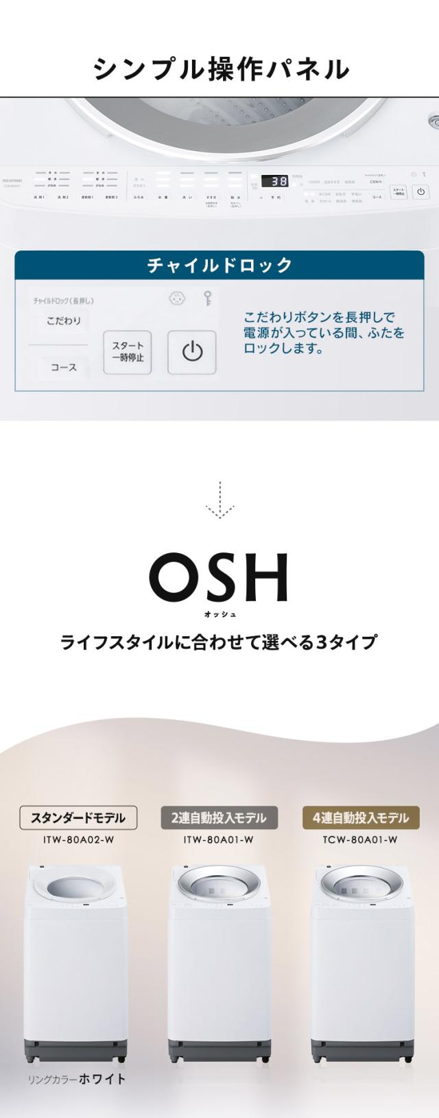 洗濯機 8キロ 8kg OSH オッシュ 縦型 一人暮らし 家族向け 自動投入 選べる洗剤自動投入 アイリスオーヤマ 全自動洗濯機 縦型洗濯機 ガチ落ち極渦洗浄 節水 節電 ITW-80A01-W