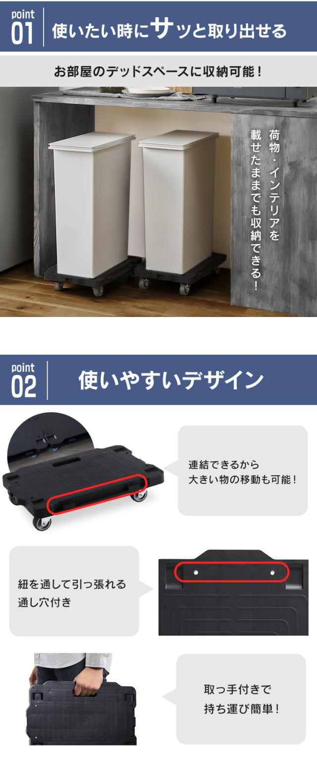 台車 平台車 連結ミニ平台車 RMH-421E ブラック 台車 平台車 ミニ 連結 軽量 シンプル コンパクト 小型 移動 収納 キャスター アイリスオーヤマ
