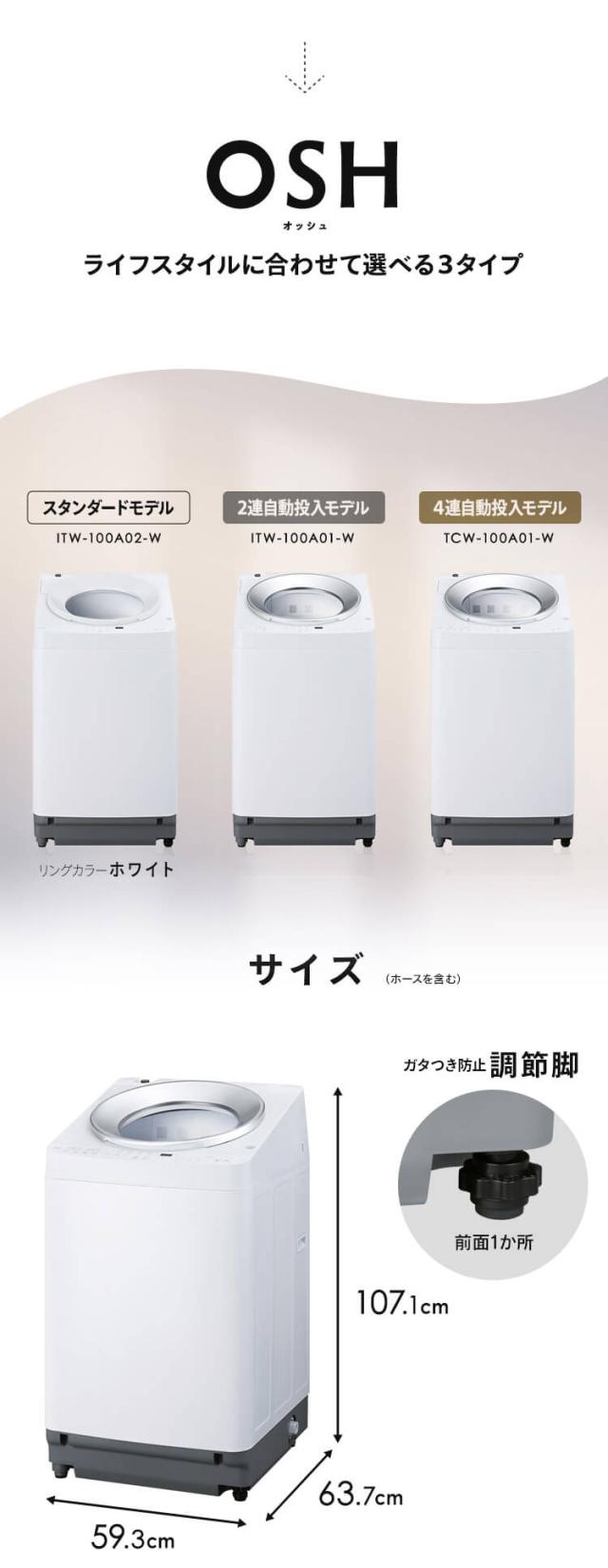 洗濯機 10キロ 10kg OSH オッシュ 縦型 一人暮らし 家族向け 4連自動投入 選べる洗剤自動投入 アイリスオーヤマ 全自動洗濯機 送料無料