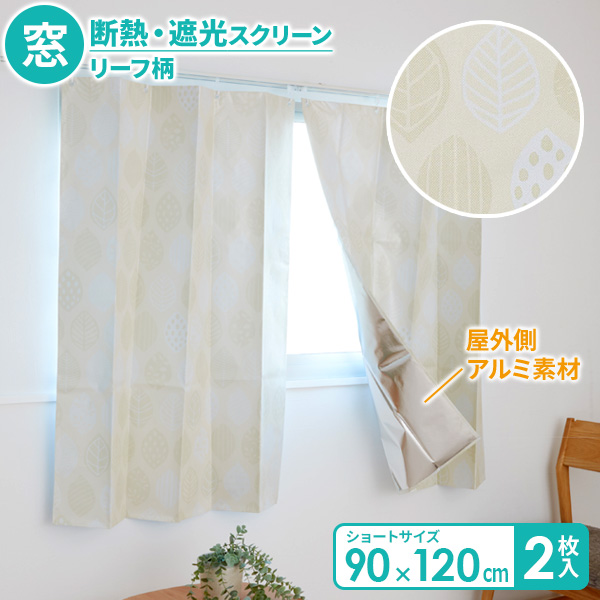 窓断熱・遮光スクリーン ショート 2枚組 H-3102 | 断熱カーテン 90×120cm 遮光 断熱 省エネ 節電 エコ 保温 保冷 窓 目隠し レールにかけるだけ UVカット 紫外線カット