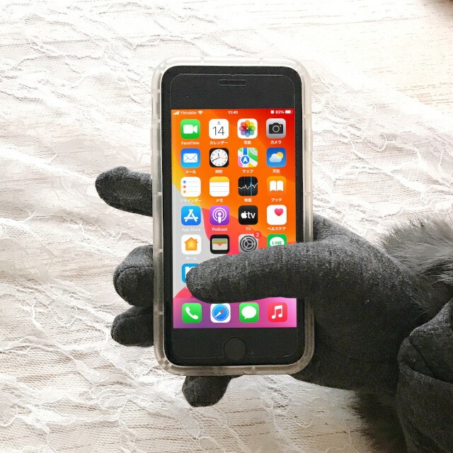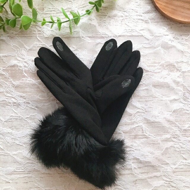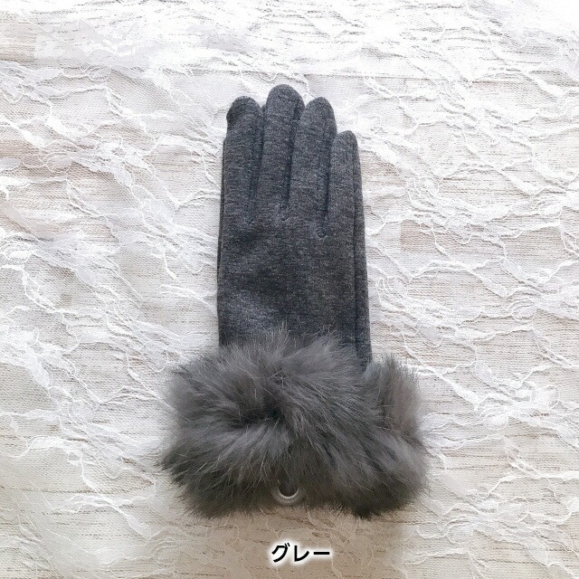 手袋をつけたままのスマホ操作可能 ラビットファーが大人かわいいレディース手袋 抗菌加工付き