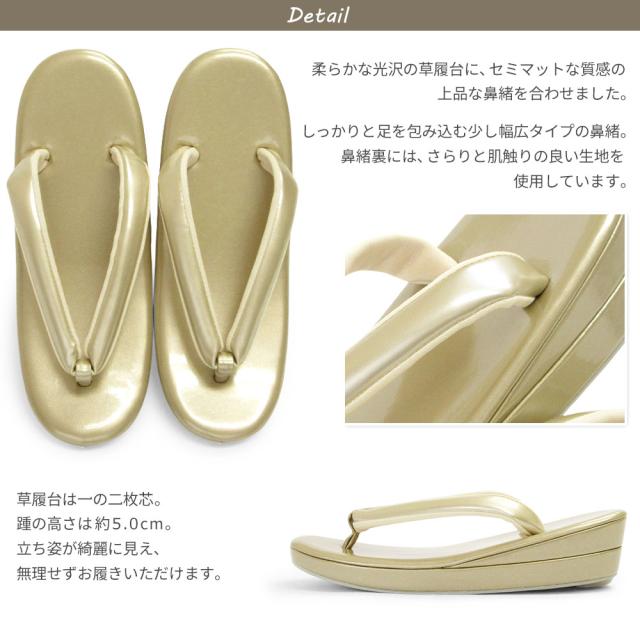 落ち着いたシャンパンゴールド色の草履台は、柔らかく上品な印象を与えます。