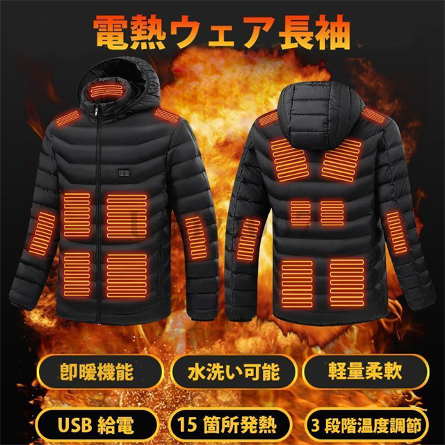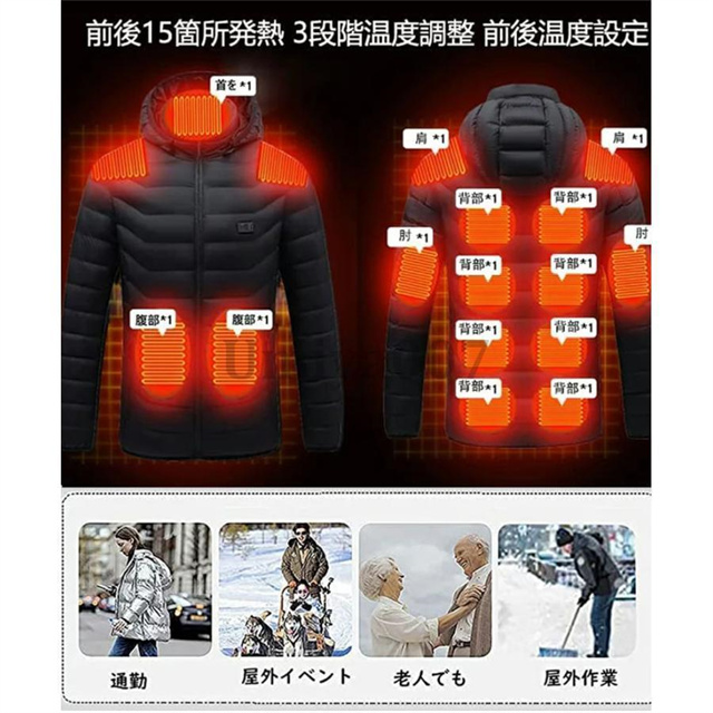 電熱ジャケット メンズ レディース フード付き ヒータージャケット 電熱ウェア中綿コート 作業着 暖房服 加熱コート ヒートジャケット 防寒着