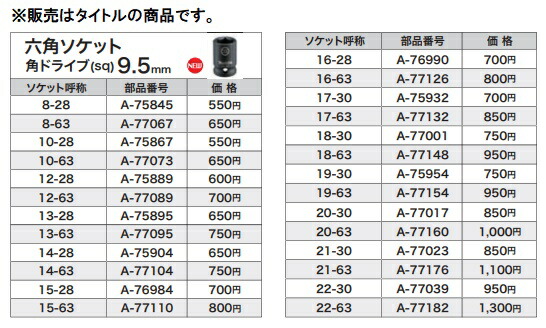 六角ソケット(角ドライブ9.5mm)