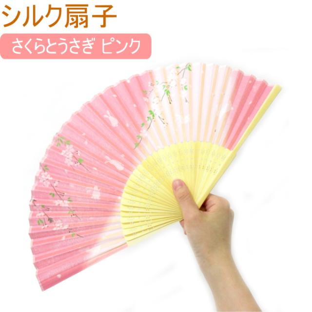 シルク扇子 さくらとうさぎ ピンク 504-730 ネコポス対応 扇子 せんす シルク コンパクト 軽量 丈夫 和雑貨 お土産 日本土産 プレゼント