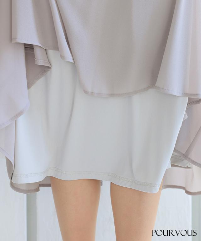 ■ケープを重ねたようなレースデザインが二の腕とウエスト周りをふんわりとカバー