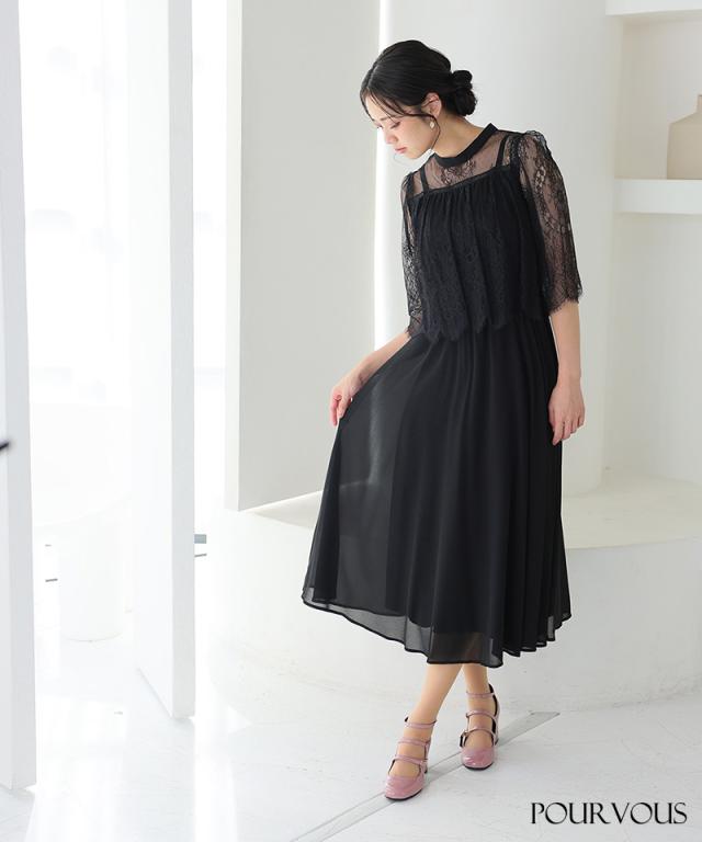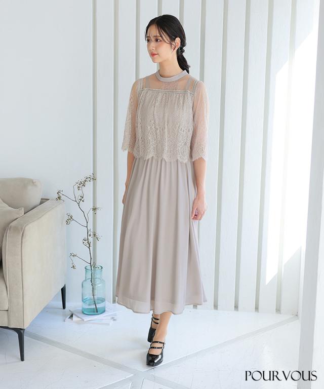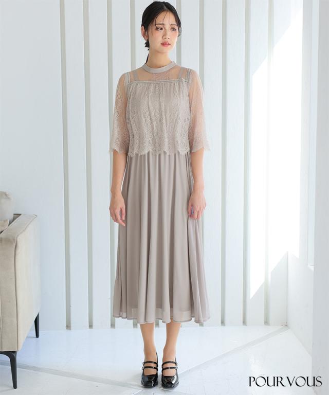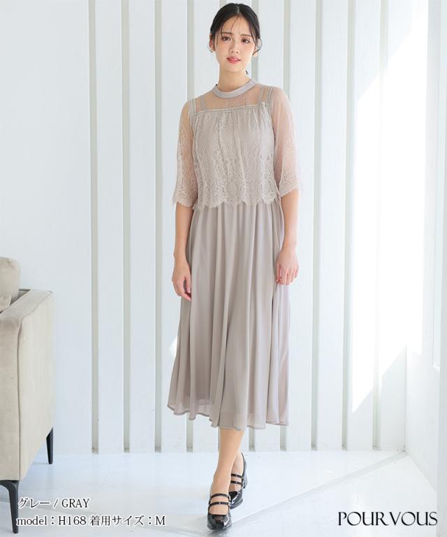 レース×シフォンワンピースドレス【786231910】20代・30代・40代・54代長袖・膝丈・セットアップ・スカート・体型カバー・ジャケット・テーラード・スーツ・大きいサイズなど・即日発送・送料無料結婚式・婚活・披露宴・顔合わせ・二次会・同窓会・お呼ばれ・食事会・謝恩会・親族・七五三・お宮参り・冠婚葬祭・弔事・女子会・デート・入学式・卒業式・入園式・卒園式・ママ・マタニティー・セレモニー・セレブ・パーティー