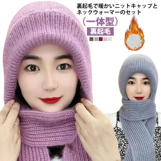 ニット帽 帽子 レディース 秋冬 裏起毛 裏ボア ケーブル編み ニットキャップ 一体型 ネックウォーマー セット ニット帽子 マフラー 冬物 レディース帽子 女性帽子 ハット 防寒 つば付き 大きいサイズ 被り心地 送料無料