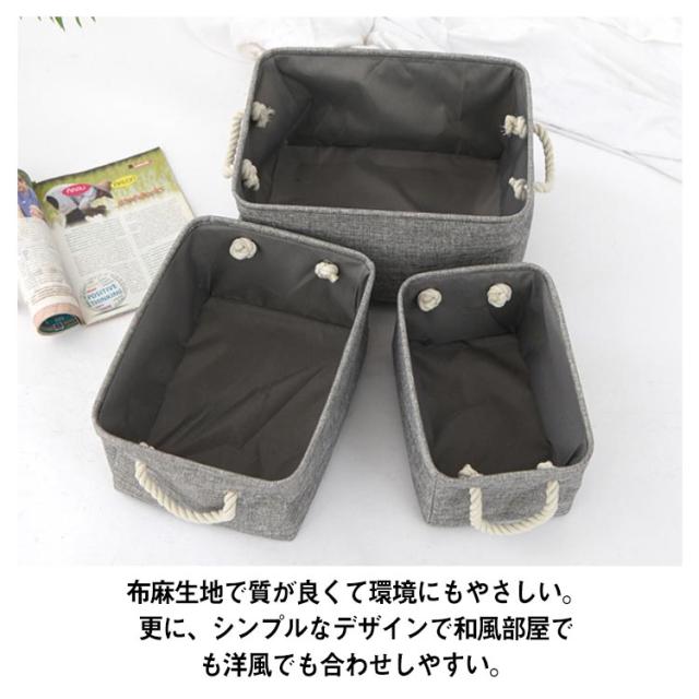 収納ボックス 布 折りたたみ 3個セット 収納ケース 収納かご 41×32×20cm 36×26×16cm 31×21×13cm おもちゃ箱 麻 取っ手付き 服 整理箱 ストレージボックス 化粧品収納 バッグ ケース 北欧 小物入れ 持ち運び 多機能 コンパクト