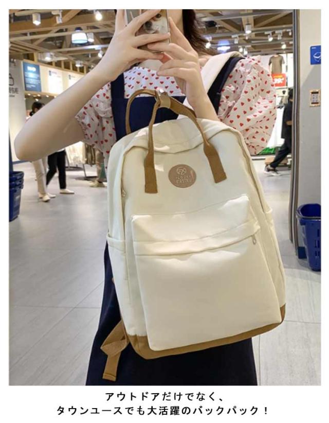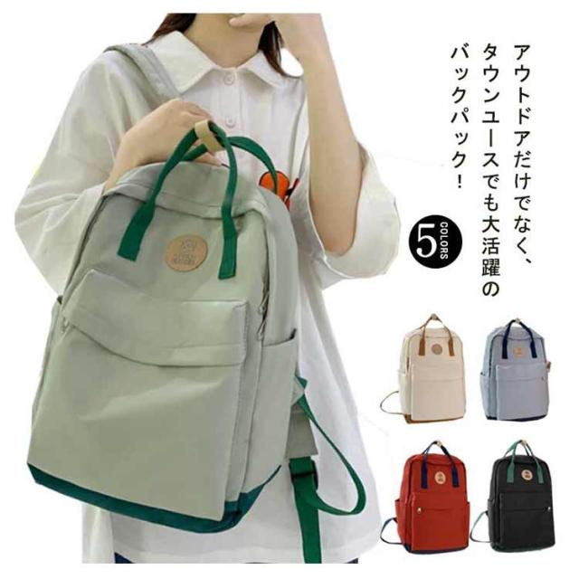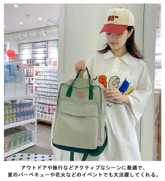 送料無料 リュック 通学 女子 韓国 大容量 高校生 バックパック おしゃれ リュックサック 中学生 多収納 ポケット ナイロン 撥水 はっ水 シンプル カジュアル かわいい 可愛い 背面ファスナー マザーズバッグ ママリュック 旅行