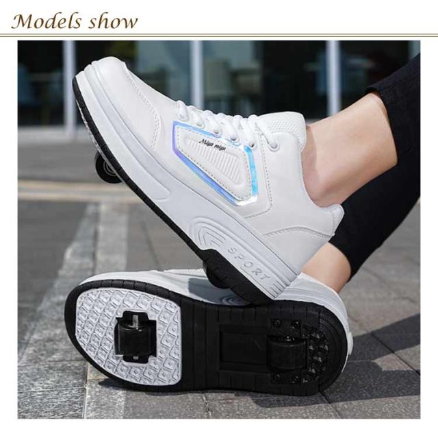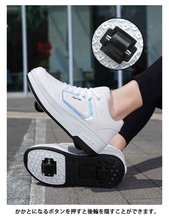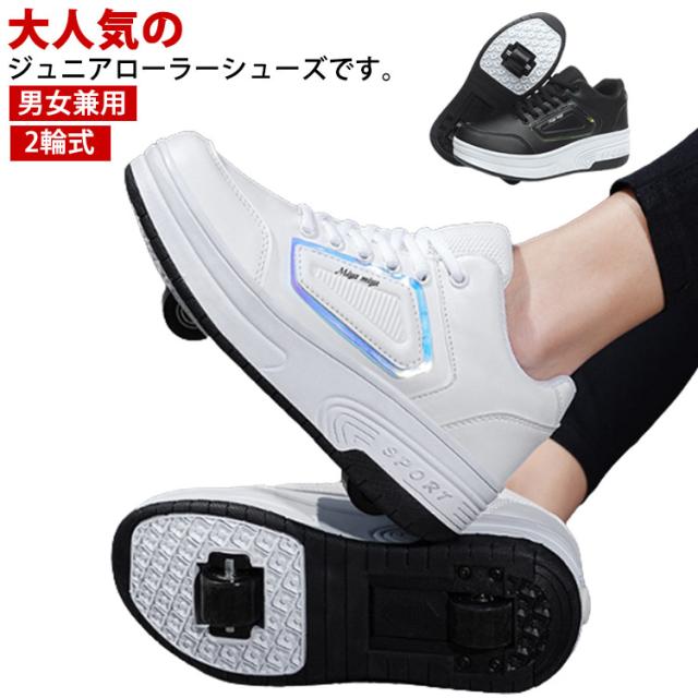 ローラーシューズ 2輪式 前輪取外し可能後輪ワンボタン収納式 スポーツシューズ 男女兼用 女の子 男の子 両輪 子供用運動靴 ギフト 収納式インラインスケート キッズスニーカー ギフト 大人 メンズ スポーツシューズ