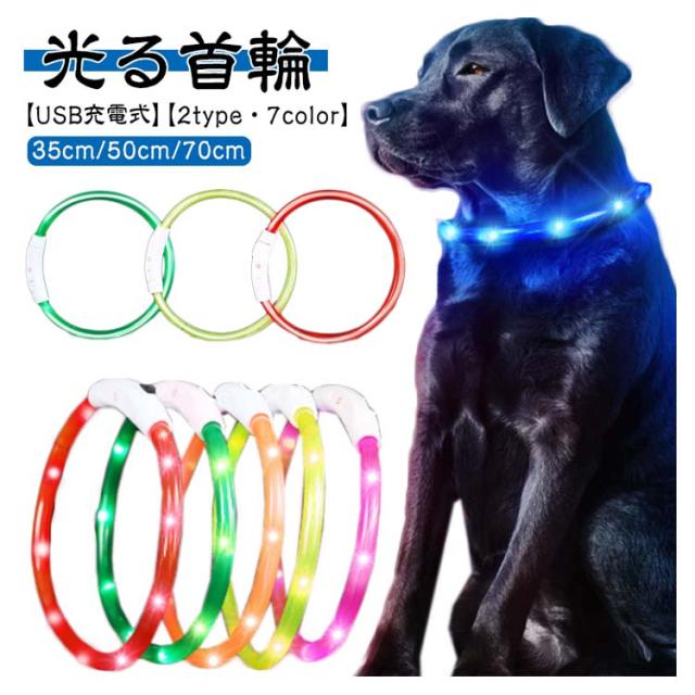 犬 光る首輪 首輪 光る 35cm 50cm 70cm カット自由 7色 小型犬 中型犬 大型犬 散歩 夜 LED ライト レインボー USB 充電式 ペット 猫 防水 事故防止 キラキラ 安全 犬の首輪 おしゃれ 点灯 点滅 ペット用品 便利 簡単 サイズ調整可 発光首輪 可愛い 犬用品