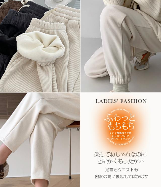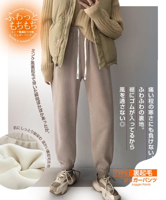 【ミンク風裏起毛 テーパード&ジョガーパンツ】