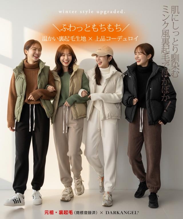 MAX1,500円OFFクーポン配布中!パンツ 裏起毛 ジョガーパンツ テーパードパンツ レディース ウエストゴム ミンク風裏起毛 カジュアル リブ ポケット付き 冬 あたたかい ヒートパンツ 防寒 保温【 ミンク風裏起毛 テーパード&ジョガーパンツ 】ダークエンジェル 秋新作