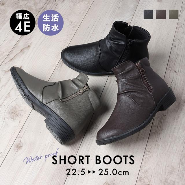 ダブルファスナーで脱ぎ履きしやすい!シャーリングデザインのショートブーツ。水ぬれに強い生活防水設計だからお天気が気になる日も安心です♪