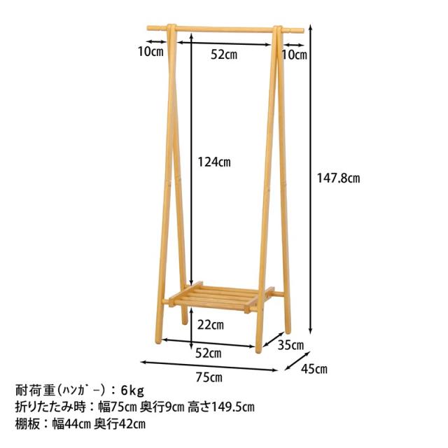 ハンガーラック 木製 折りたたみ 頑丈 スリム 省スペース コートハンガー 幅75 棚付き コート掛け シンプル おしゃれ コンパクト 洋服掛け 北欧 ハンガー ラック 洋服 収納 大容量 軽量 75cm幅 シングル ハンガースタンド 薄型 高い 子供 服 a型 三角 スタンド ウッド