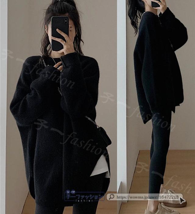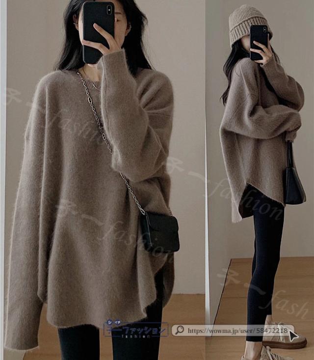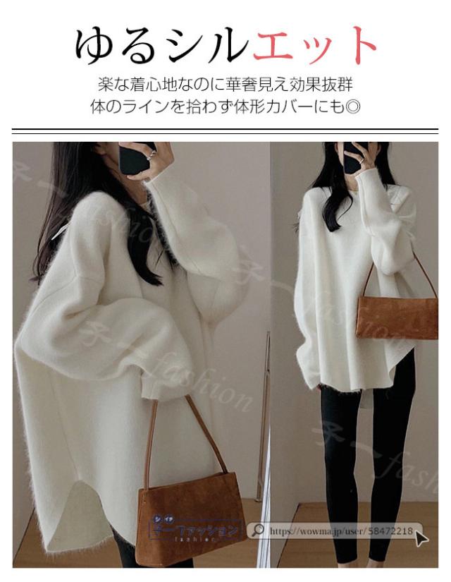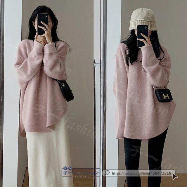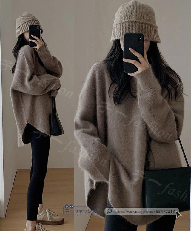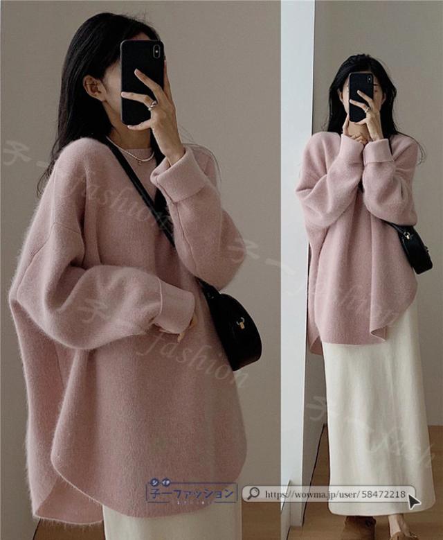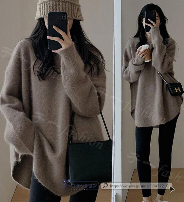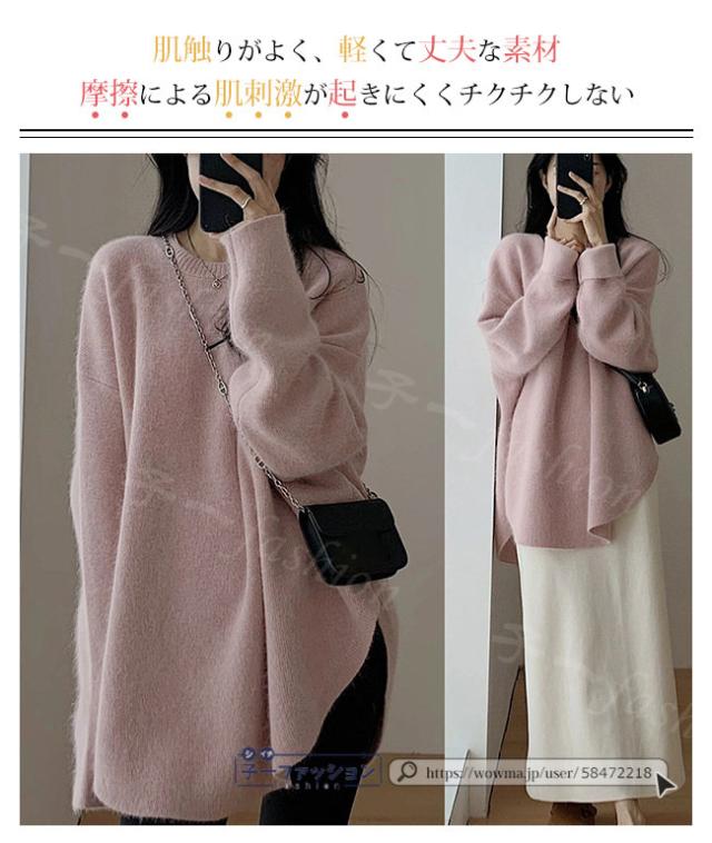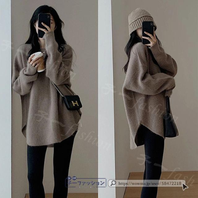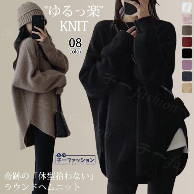 <1点2,650円!クーポン利用で>ニット トップス セーター 冬新作 新作 長袖 レディース トップス ボリューム クルーネック 伸縮性 あったか 暖かい トップス 大きいサイズ ゆったり 無地 新作 秋 冬 体型カバー お出かけ かわいい デート 秋服 秋冬
