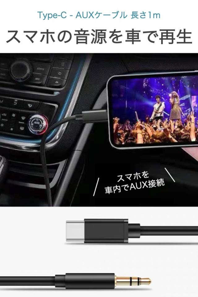 商品名:Type-c AUXケーブル 黒 1m DAC内蔵 ステレオミニプラグ カーオーディオ タイプC android 3.5mm イヤホンジャック 変換 車内 スマホ 音楽 再生 アンプ カーナビ