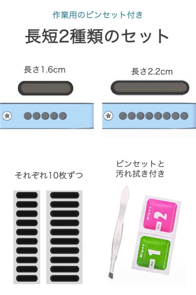 商品名:スピーカー ホコリ防止 シール 黒 20枚セット ピンセット付き スマホ 防塵 ステッカー 1.6cm 2.2cm ほこりガード 汚れ ゴミ シンプル スピーカーステッカー