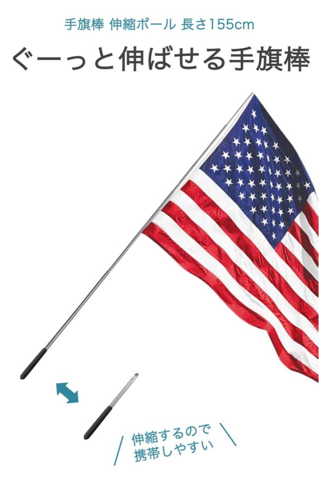 手旗棒 伸縮ポール 長さ155cm 手旗 滑り止め 指示棒 ツアーガイド 授業 会議 ゲーフラ サッカー コンパクト 伸縮 黒 先端 三角リング 国旗 グリップ 旅行 手旗ポール 軽量 携帯 持ち運び 仕事 フラッグ 丈夫 フラッグ用ポール リング