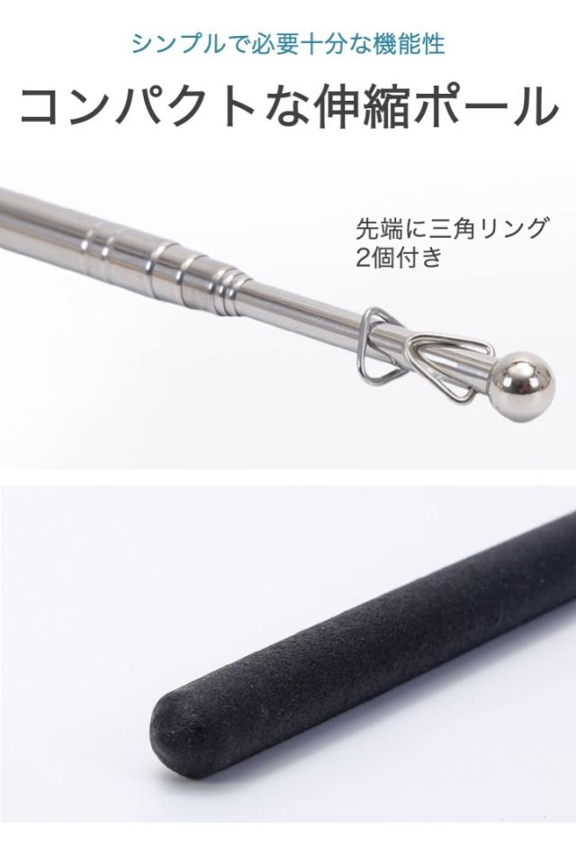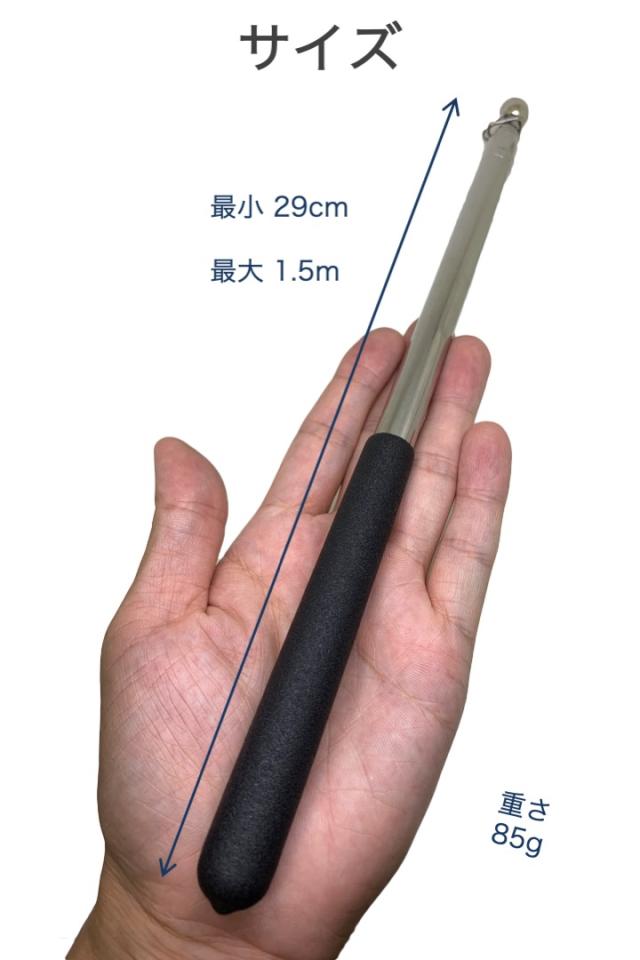 商品名:手旗棒 伸縮ポール 長さ155cm 手旗 滑り止め 指示棒 ツアーガイド 授業 会議 ゲーフラ サッカー コンパクト 伸縮 黒 先端 三角リング 国旗 グリップ 旅行
