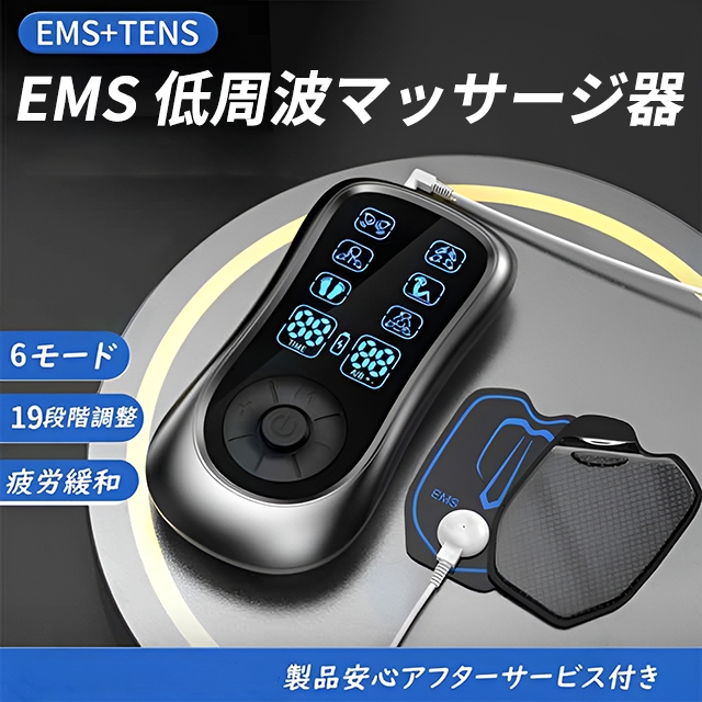 マッサージ器 低周波マッサージ器 ems パッド付き 充電式 6種類モード 19階段調整 疲労回復