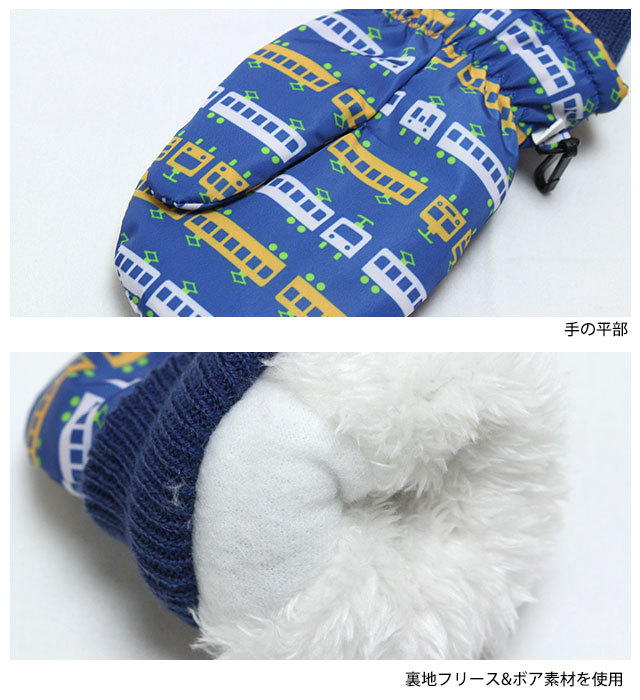 | スキー 手袋 子供 スキーグローブ ベビー キッズ 男の子 ミトン スノーグローブ 雪遊び 冬 手袋 電車プリント |