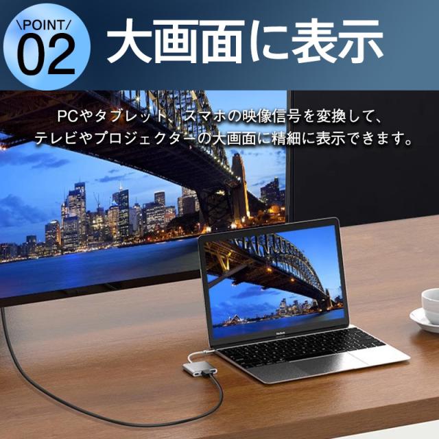 Type C HDMI 変換ケーブル Type-C 変換アダプター USB 変換アダプタ 設定不要 高品質 PC スマホ 変換器 耐久性 高画質 コンパクト 携帯しやすい