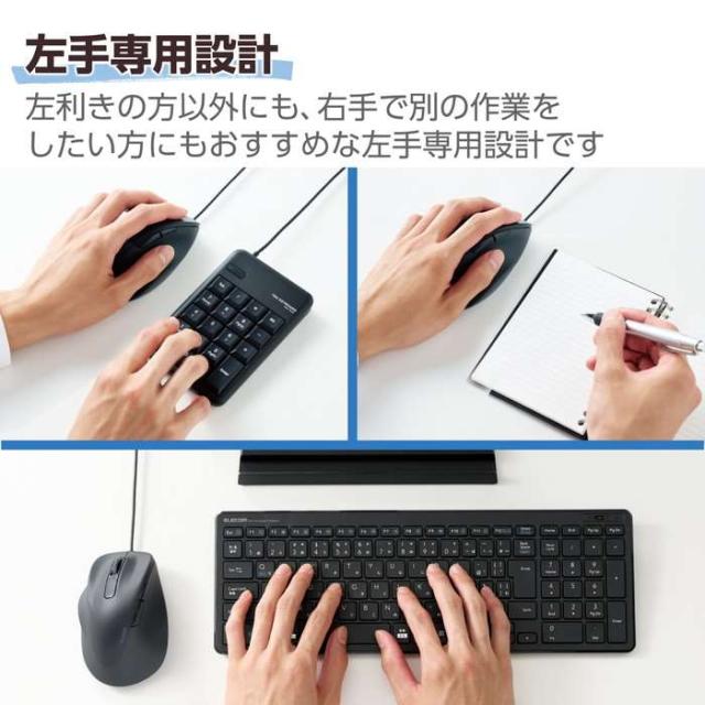 ■商品名:有線 マウス 静音 5ボタン 左手専用 Windows 11 10 mac Chrome 対応 抗菌 XLサイズ EX-G ブラック
