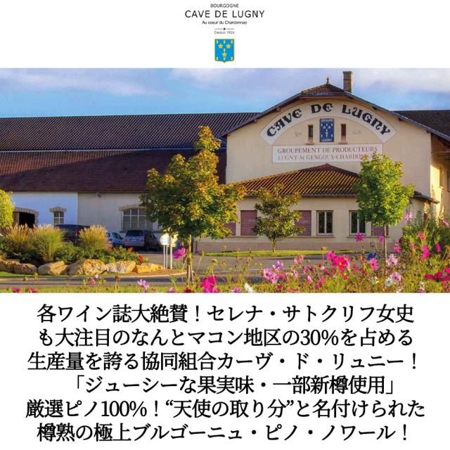 各ワイン誌大絶賛!セレナ・サトクリフ女史も大注目のなんとマコン地区の30%を占める生産量を誇る協同組合カーヴ・ド・リュニー! 「ジューシーな果実味・一部新樽使用」厳選ピノ100%!“天使の取り分”と名付けられた樽熟の極上ブルゴーニュ・ピノ・ノワール!