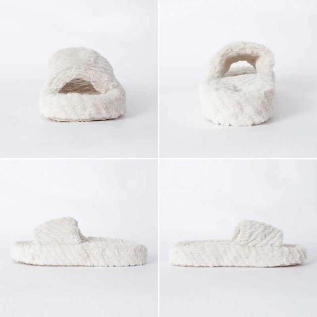 海上がりに裸足で履きたくなるエコファーを使ったスライドサンダル。