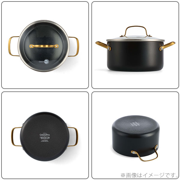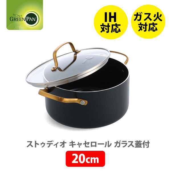 GREENPAN グリーンパン ストゥディオ キャセロール 20cm ガラス蓋付 CC007338-004 送料無料 STUDIO 両手鍋 IH対応 ガス火対応 セラミックコーティング ゴールドハンドル PFAS エコ 時短 キッチン 料理