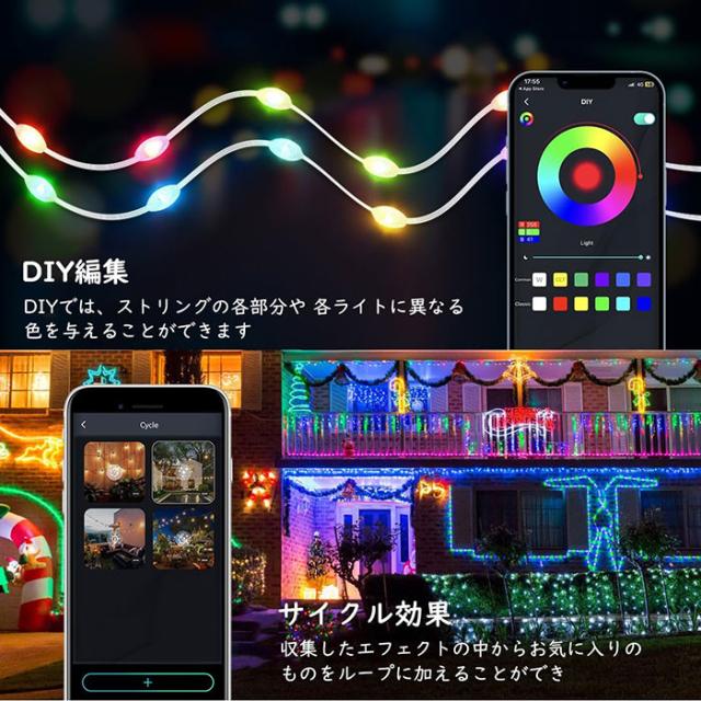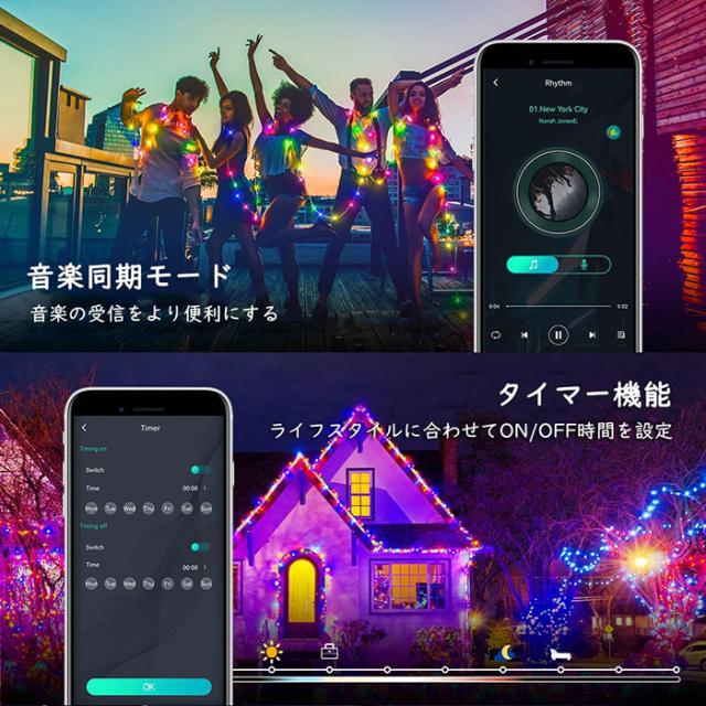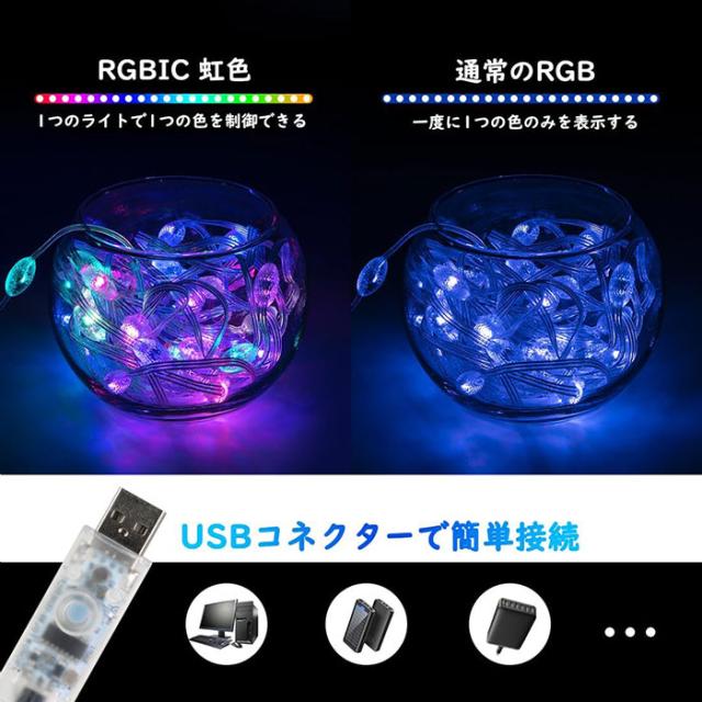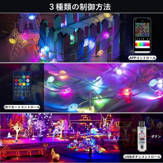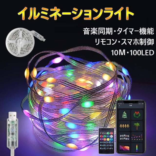 イルミネーションライト 10m 100球 USB給電式 DIY LEDストリングライト クリスマスツリーライト クリスマスライト タイマー機能 音楽同期 アプリ制御 リモコン付 調光調色 IP65防水 点滅 電飾 屋外 室内 クリスマス
