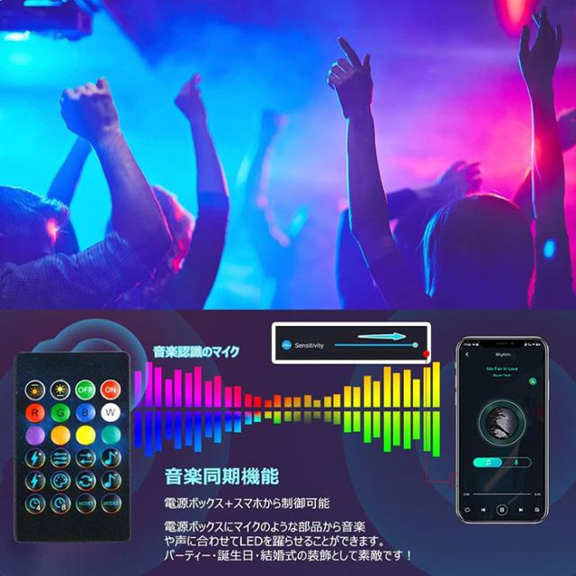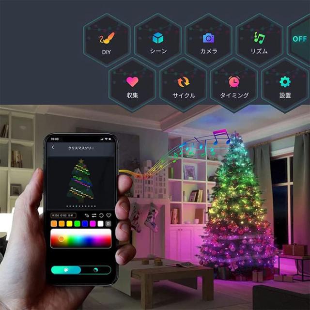 【リズム機能】リズム機能が搭載しており、音楽や声のリズムに合わせてクリスマスツリーライトのRGB光が変化できます。様々な光を演出し、夢のような視覚空間を作り出せます。