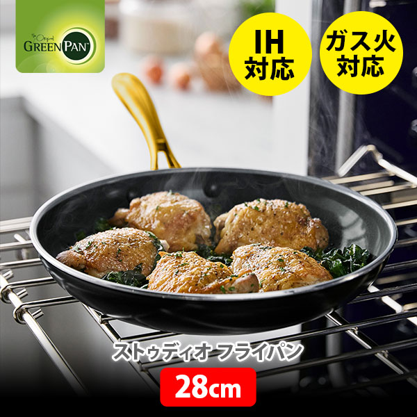 GREENPAN グリーンパン ストゥディオ フライパン 28cm CC007341-004 送料無料 フライパン IH対応 セラミックコーティング ゴールドハンドル PFAS エコ 時短 料理 キッチン