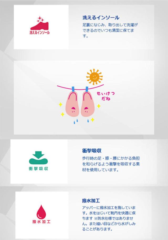 アッパーに撥水加工を施しています。水をはじいて靴内を快適に保ちます。※防水仕様ではありません。