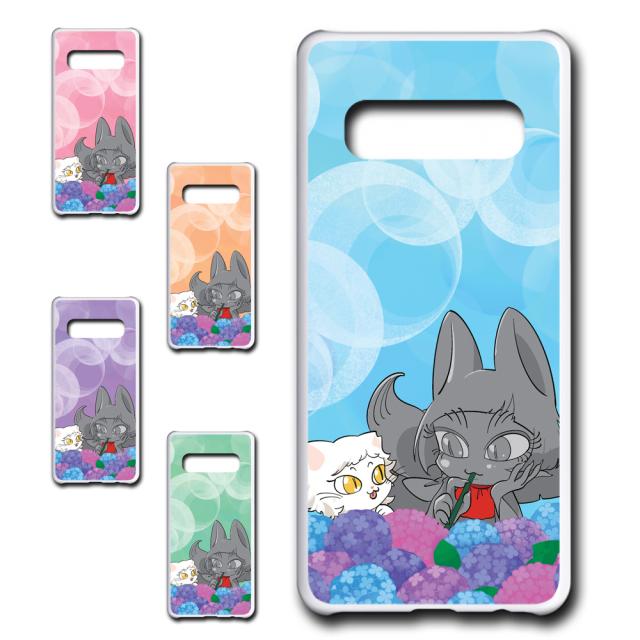 Galaxy S10Plus SCV42 ケース かわいい キャラクター オリジナル 猫 紫陽花 花柄 ネコ あじさい お洒落 カワイイ おしゃれ ハードケース 黒猫 白猫 アニメ 可愛い sc04l ギャラクシーs10プラス ぎゃらくしーs10ぷらす galaxy s10plus