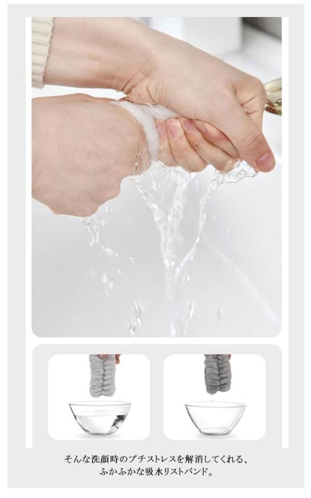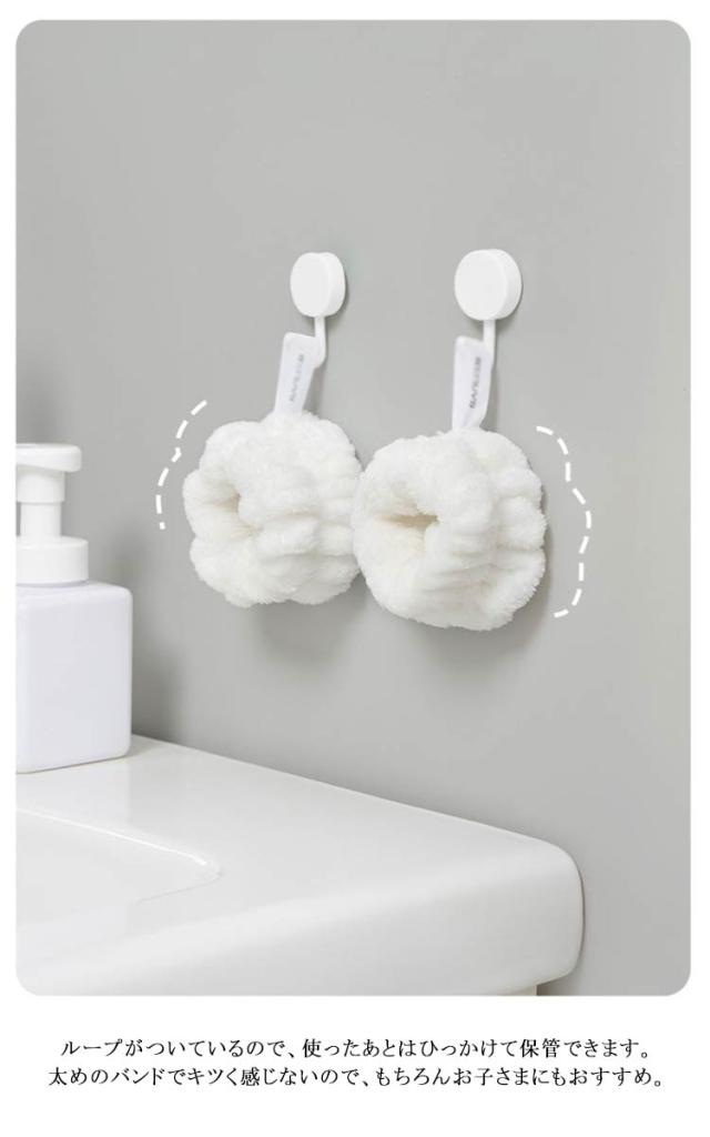 | 気づいたら袖が濡れていたり、 肘まで垂れてきた水が床に落ちたり・・ そんな洗顔時のプチストレスを解消してくれる、 ふかふかな吸水リストバンド。 ループがついているので、 使ったあとはひっかけて保管できます。 太めのバンドでキツく感じないので、 もちろんお子さまにもおすすめ。 | |