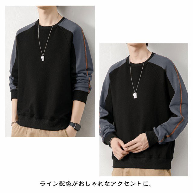| あったか やわらか トレーナー ライン配色がおしゃれなアクセントに。 肌触り滑らかで、伸縮性抜群の生地。 | |