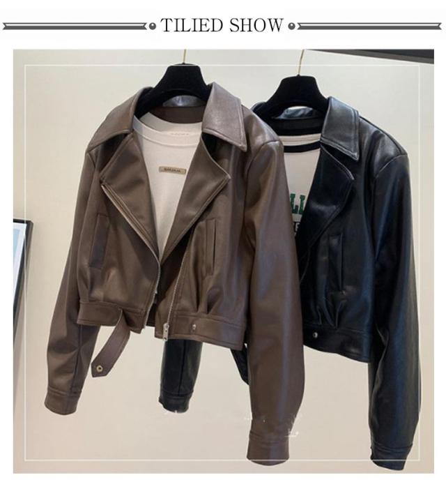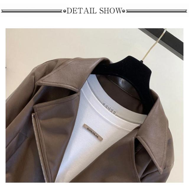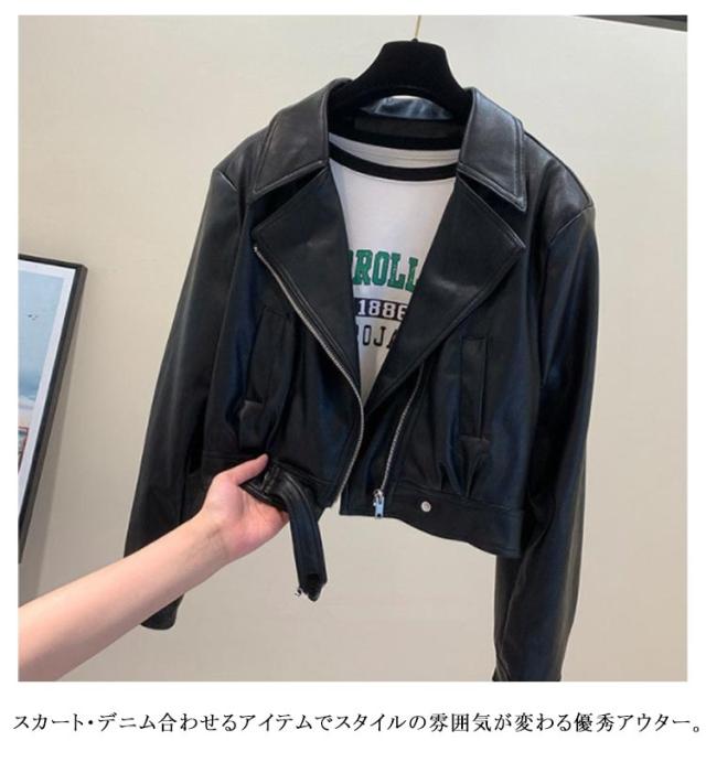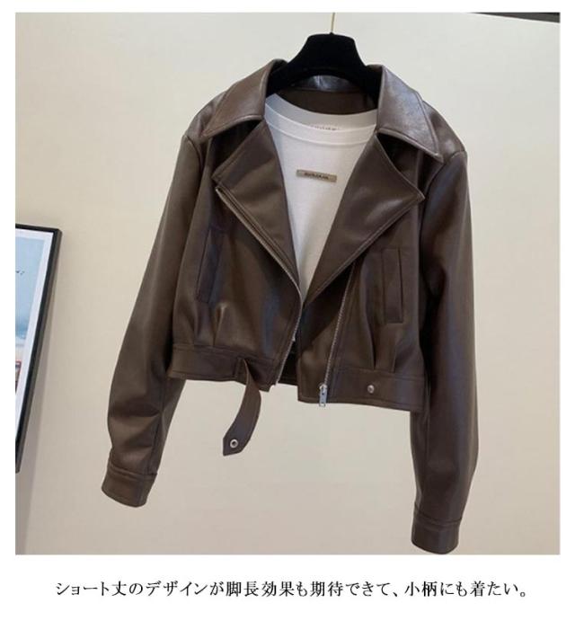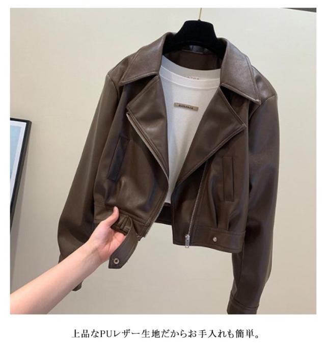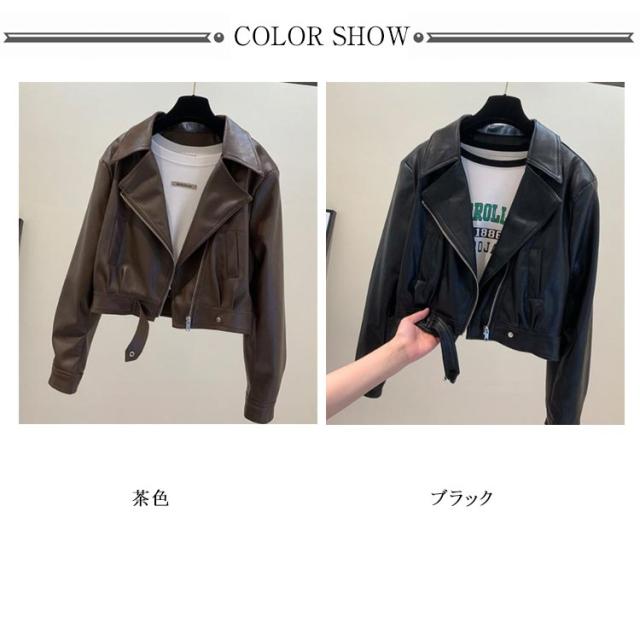細見え ライダース ジャケット 軽量 レザージャケット PUレザー ライダースジャケット レディース ブルゾン ショート丈 バイクジャケット おしゃれ 茶色 黒 春 秋 冬
