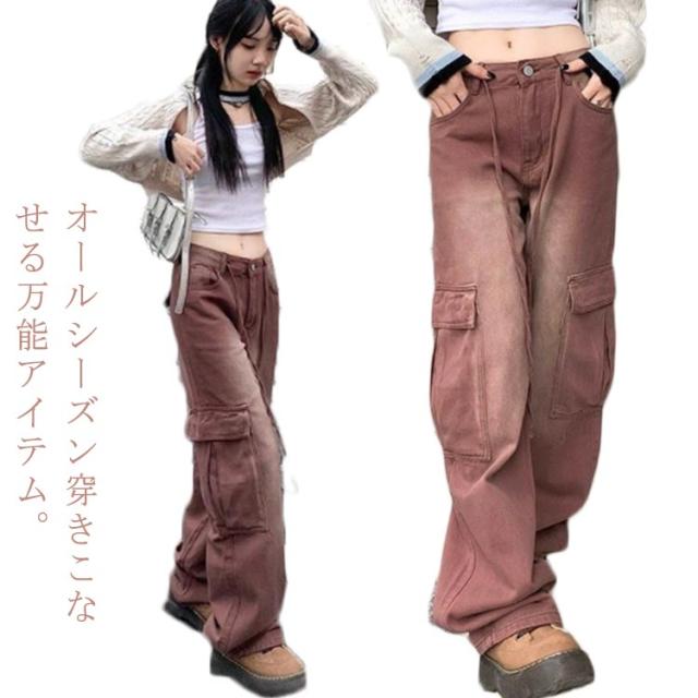 カーゴパンツ レディース ゆったり デニム 秋冬 ストレート デニムパンツ ルーズ ズボン ベイカーパンツ ボトムス ワイド ダボ 無地 女性 ハイウエスト 作業着 ストリート 30代 40代 50代