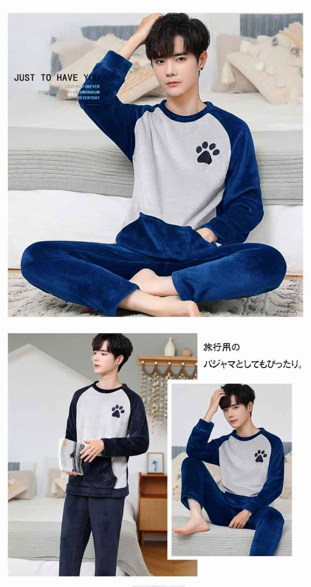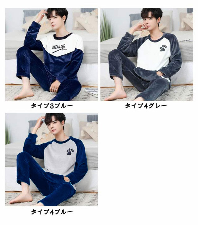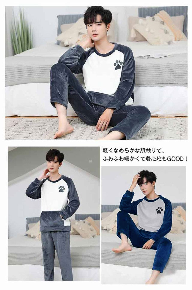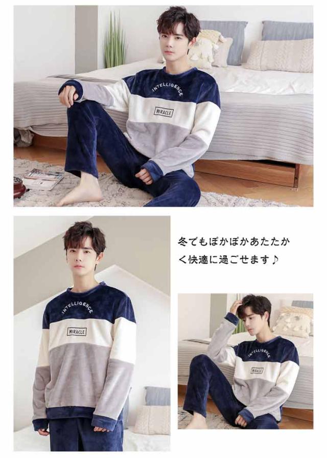 もこもこ ルームウェア メンズ 上下セット フリース ふわふわ 部屋着 暖かい あったか 冬用 長袖 寝巻き ゆったり 寝間着 厚手 クルーネック フランネル セットアップ 暖かい