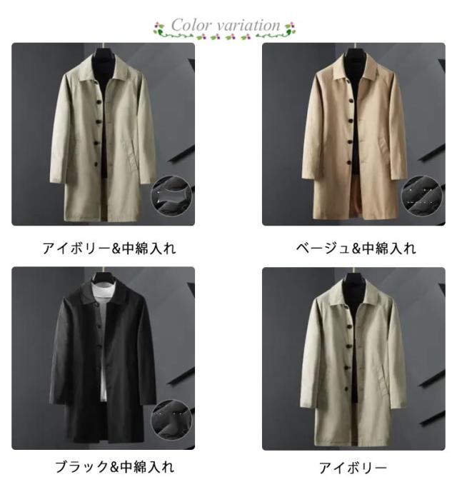 メンズ スプリングコート ステンカラーコート ビジネスコート 中綿 ビジネス ロングコート スーツ コート トレンチ 軽量 撥水 メンズコート シンプル きれいめ 通勤 仕事 アウター 秋冬 春 秋 冬 暖かい 送料無料
