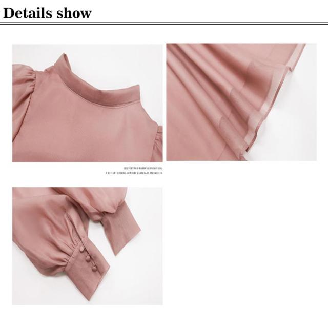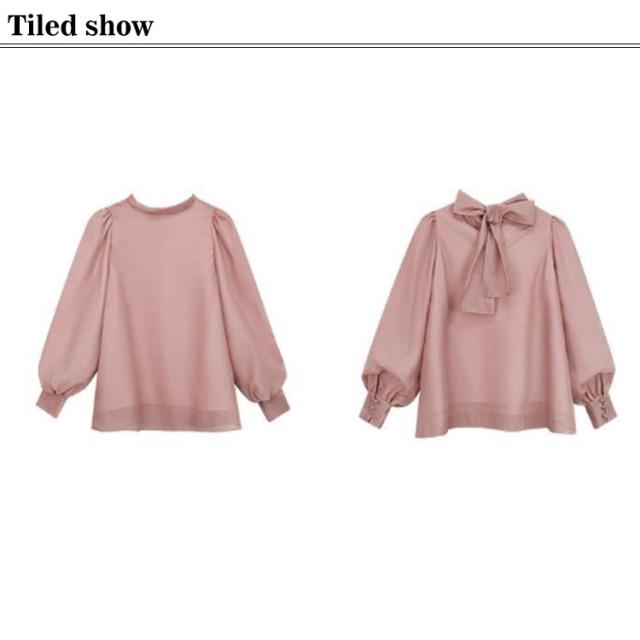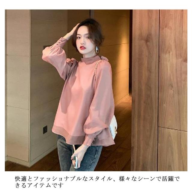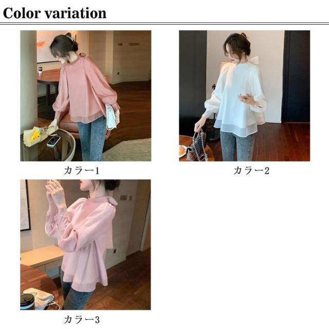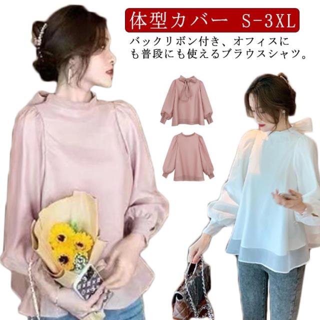 バックリボンブラウス シャツ シフォンブラウス レディース ブラウス トップス 長袖 ボリューム袖 カシュクール かわいい おしゃれ 体型カバー S M L XL 2XL 3XL