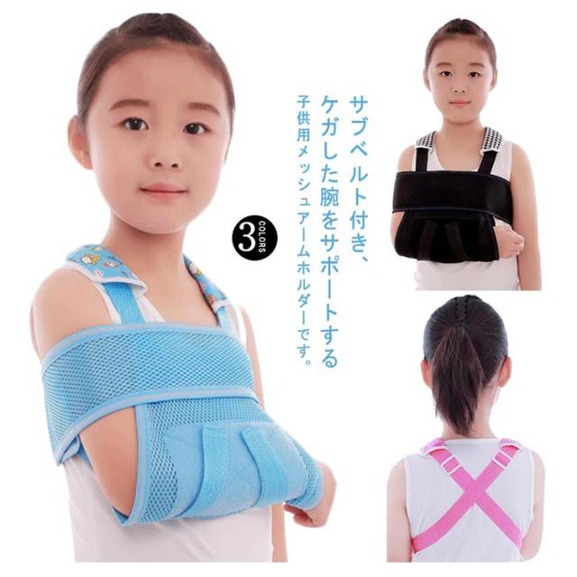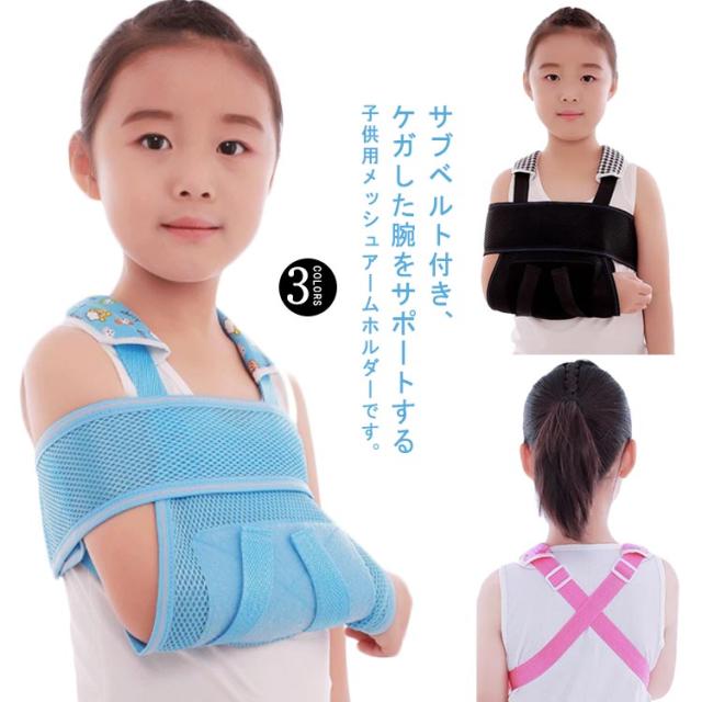 ダブルストラップ×サブベルト付!子供用 腕つりサポーター アームホルダー 三角巾 アームスリング 腕スリング 通気性 メッシュ 腕サポーター 捻挫 怪我 固定 骨折 脱臼 ショルダーパッド S M L XL 2XL