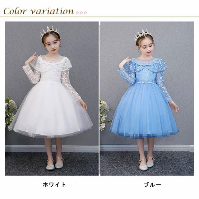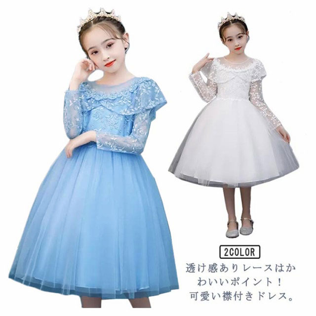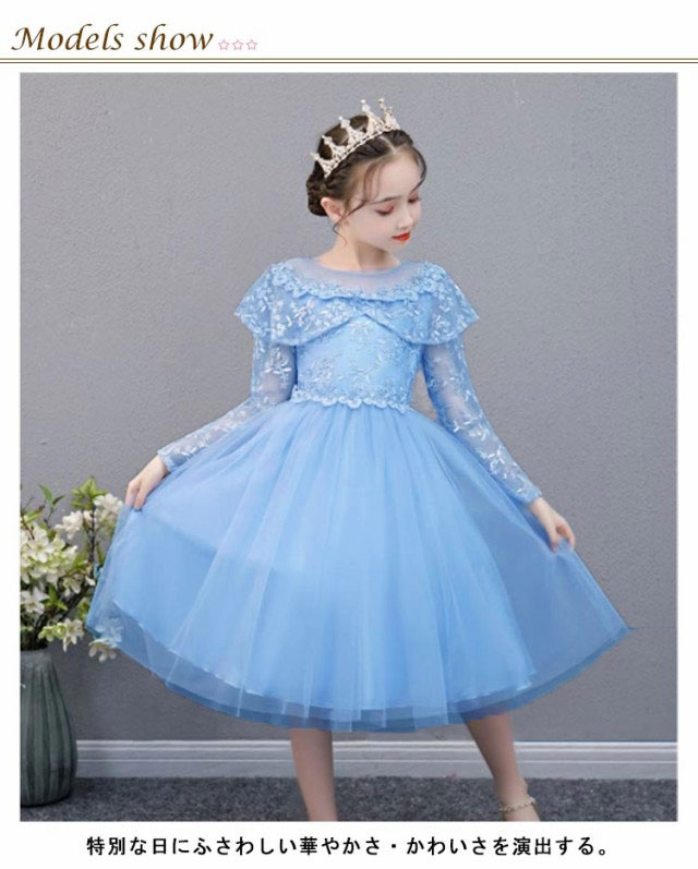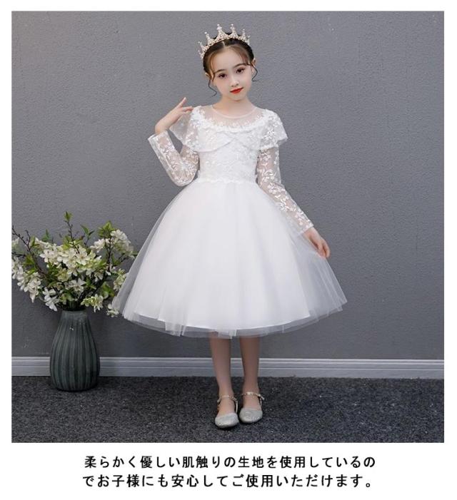 子供ドレス 長袖 ドレス 子供 ピアノ発表会 子どもドレス 膝丈 レースドレス 発表会ドレス フォーマル キッズ 女の子 ジュニア 子供服 ワンピース 七五三 結婚式 フラワー 演奏会 襟付き 110 120 130 140 150 160