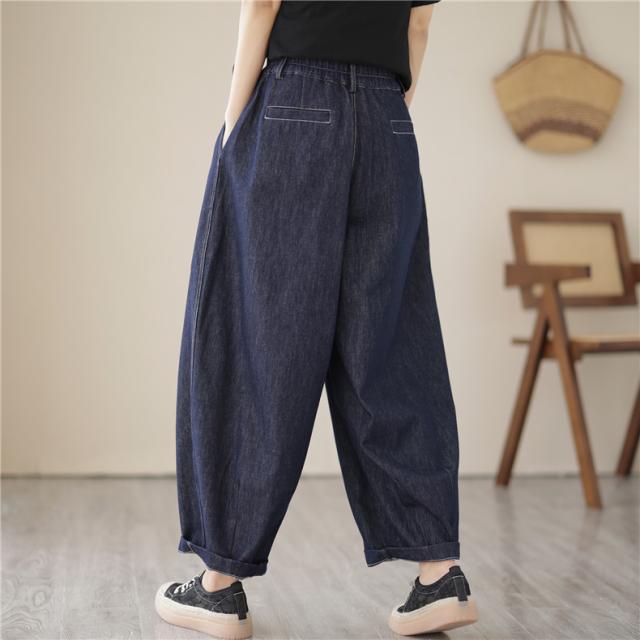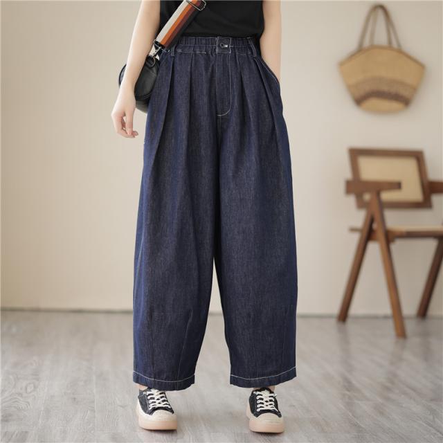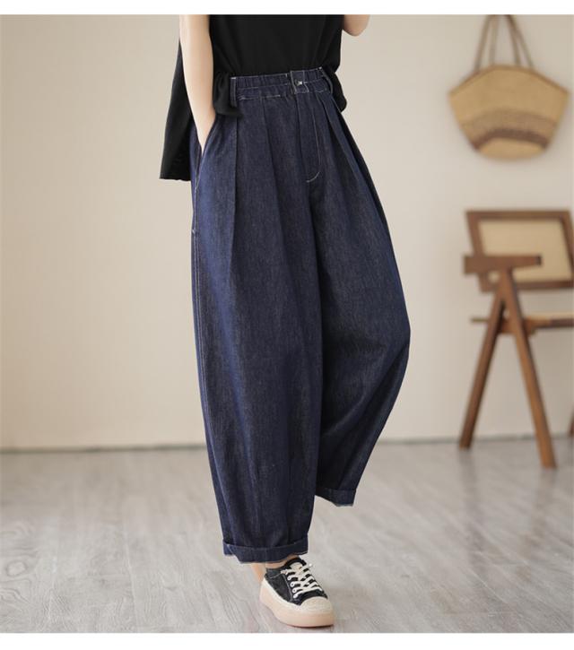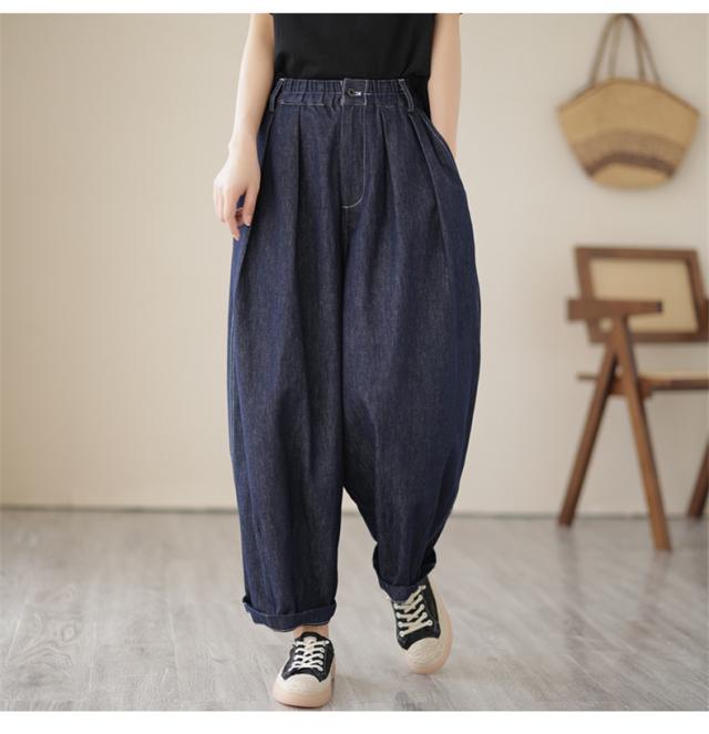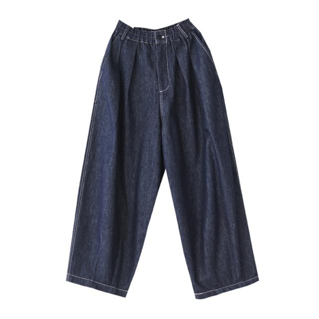 パンツ デニム レディース 秋 バルーン ボトムス ズボン ワイド コクーン 綿 ウエストゴム 体型カバー デニム サーカスパンツ 腰まわりはすっきり オシャレ