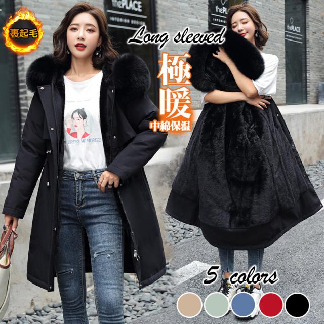 コート 裏起毛 レディース 中綿 コート 裏ポア 秋冬 厚手 ダウンコート 柔らかい ファーフード アウター ファーコート防寒 エ